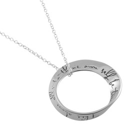 Empower and honor one's own intentions with this Laurel Elliott DVB necklace, featuring a line from Shakespeare's Hamlet. The 1.625" x 1" twisted ring pendant presents the quote, "This above all, to thine own self be true," from Act I, Scene III of Hamlet. The pendant hangs from an 18" sterling silver chain threaded through the hole in the center of the ring.