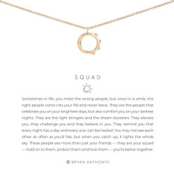 The necklace is presented on a card with the following description, "Sometimes in life, you meet the wrong people, but once in a while, the right people come into your life and never leave. They are the people that celebrate you on your brightest days, but also comfort you on your darkest nights. They are the light-bringers and the dream boosters. They elevate you, they challenge you and they believe in you. They remind you that every night has a day and every scar can be healed. You may not see each other as often as you'd like, but when you catch up, it lights the whole sky. These people are more than just your friends - they are your squad - hold on to them, protect them and love them - you're better together."